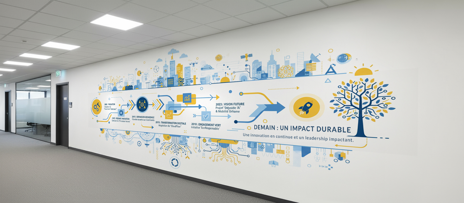 L’impression verticale est une technologie innovante qui imprime directement sur vos murs aussi bien en intérieur qu’en extérieur.